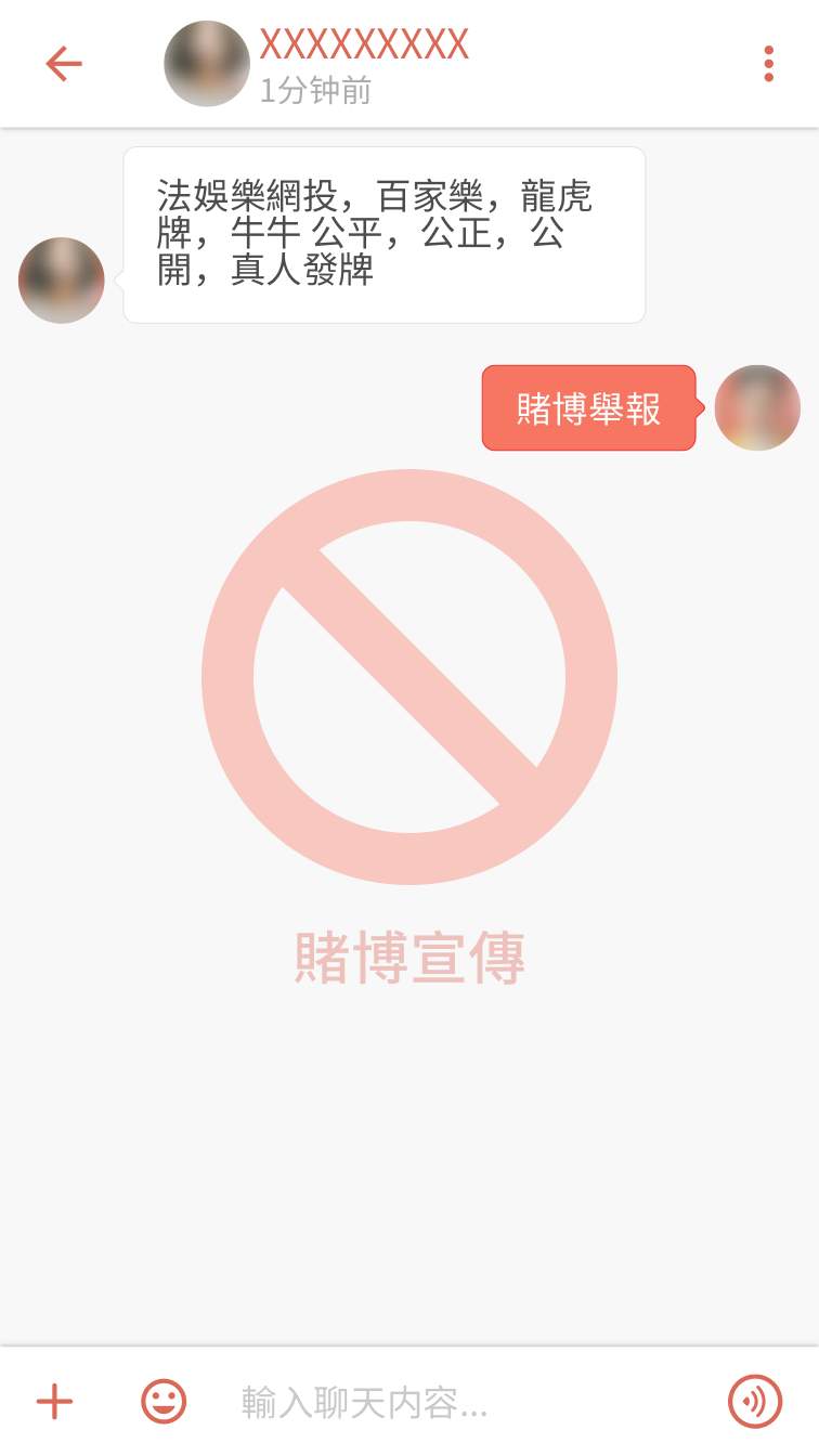 若在使用中發現他人帳號存在違法資訊,可撥打當地執法部門電話進行舉報,經執法部門核實後我們會對其帳號進行禁言或封號等處罰。